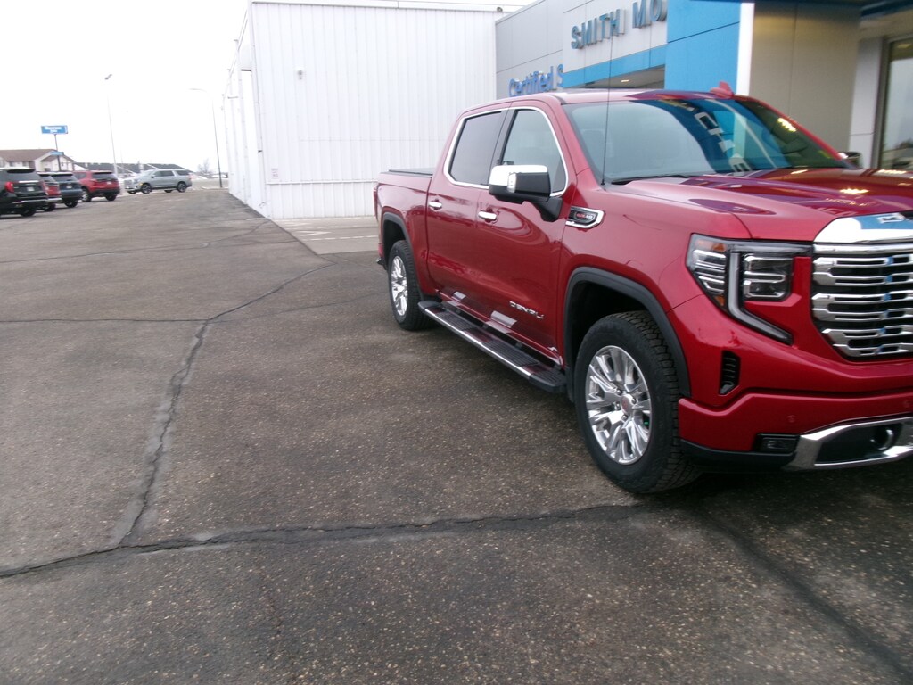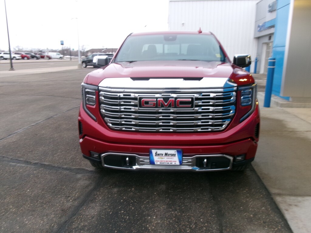 Smith Motors is proud to present this 2023 GMC Sierra 1500 Denali. ONE OWNER, LOCAL TRADE, 10-Speed Automatic, 4WD, Jet Black Leather, 10-Way Power Driver Seat Adjuster w/Lumbar, 10-Way Power Passenger Seat Adjuster w/Lumbar, 120-Volt Bed Mounted Power Outlet, 120-Volt Instrument Panel Power Outlet, 170 Amp Alternator, 2 Charge/Data USB Ports Inside Center Console, 2 Type-C Charge-Only Rear USB Ports, 2 USB Ports, Adaptive suspension, Apple CarPlay/Android Auto, Auto High-beam Headlights, Auto-Locking Rear Differential, Auxiliary External Transmission Oil Cooler, Bed View Camera, Chrome Header w/Signature Denali Chrome Grille, Chrome Recovery Hooks, Chrome Wheel To Wheel Assist Steps, Color-Keyed Carpeting Floor Covering, Compass, Deep-Tinted Glass, Delay-off headlights, Denali Premium Suspension w/Adaptive Ride Control, Driver Memory, Electric Rear-Window Defogger, Electrical Steering Column Lock, Electronic Stability Control, Emergency communication system: OnStar and GMC connected services capable, Engine Block Heater, Floor-Mounted Center Console, Front dual zone A/C, Front fog lights, Front Rainsensing Wipers, Fully automatic headlights, GMC Connected Access Capable, HD Surround Vision, Heated 2nd Row Outboard Seats, Heated Driver & Front Outboard Passenger Seating, Heated steering wheel, Heavy-Duty Air Filter, Hill Descent Control, Hitch Guidance, Hitch Guidance w/Hitch View, In-Vehicle Trailering App, Integrated Trailer Brake Controller, Keyless Open & Start, LED Cargo Area Lighting, Navigation System, OnStar & GMC Connected Services Capable, Perimeter Lighting, Power Door Locks, Power driver seat, Power Front Passenger Windows w/Express Up/Down, Power Front Windows w/Driver Express Up/Down, Power Rake & Telescoping Steering Column, Power Rear Windows w/Express Down, Power Sliding Rear Window w/Rear Defogger, Preferred Equipment Group 5SA, Premium Bose 7-Speaker Sound System, Push Button Start, Radio: Premium GMC Infotainment Audio System, Rain sensing wipers, Rear Cross Traffic Braking, Rear Pedestrian Detection, Rear Wheelhouse Liners, Rear window defroster, Remote Vehicle Starter System, SiriusXM w/360L, Spray-On Pickup Bed Liner w/Denali Logo, Steering Wheel Audio Controls, Steering wheel mounted audio controls, Theft Deterrent System (Unauthorized Entry), Trailer Camera Provisions, Trailer Side Blind Zone Alert, Trailering Package, Ultrasonic Front & Rear Park Assist, Universal Home Remote, Variably intermittent wipers, Ventilated Driver & Front Passenger Seats, Wi-Fi Hotspot Capable, Wireless Charging, Wireless Phone Projection.